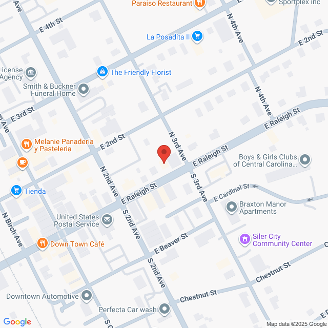 Our building is white with red shutters. There is a parking lot behind the building and the main entrance is also located in the rear. Please call us if you have mobility issues, as this is an old building and may present challenges.